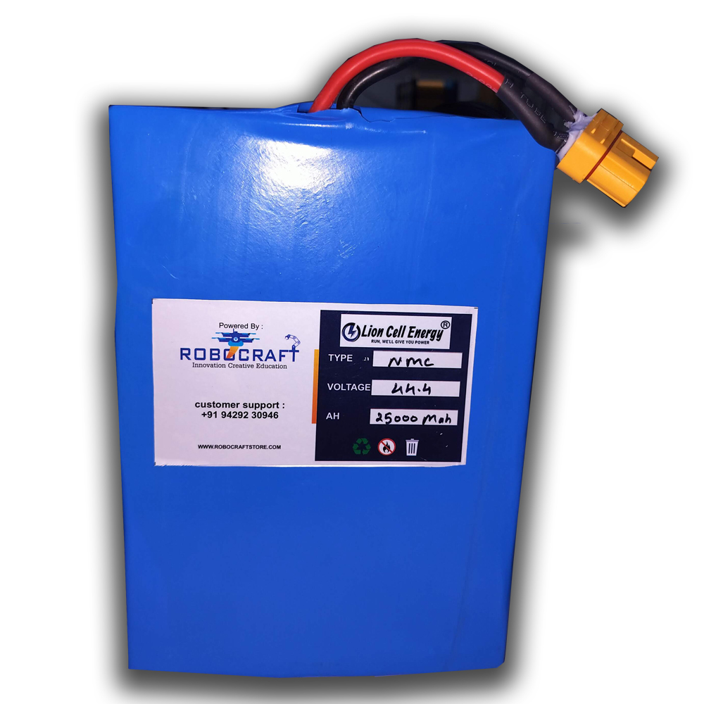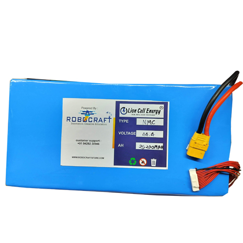 Power your agriculture drone with LION CELL Energy powered by ROBOCRAFT—India’s trusted name in high-performance Li-ion drone batteries. Our 22.2V and 44.4V 25,200mAh UAV battery packs use premium Molicel 21700 P42A cells, delivering superior flight time, high discharge current, and rugged reliability. Designed for spraying drones, field mapping UAVs, and agri drones, each pack supports Smart BMS, XT90/AS150 connectors, and custom builds. Whether you fly for crop spraying, seeding, or surveillance, trust LION CELL for endurance, safety, and performance. Optimize your drone missions with India’s finest agriculture drone battery solution.